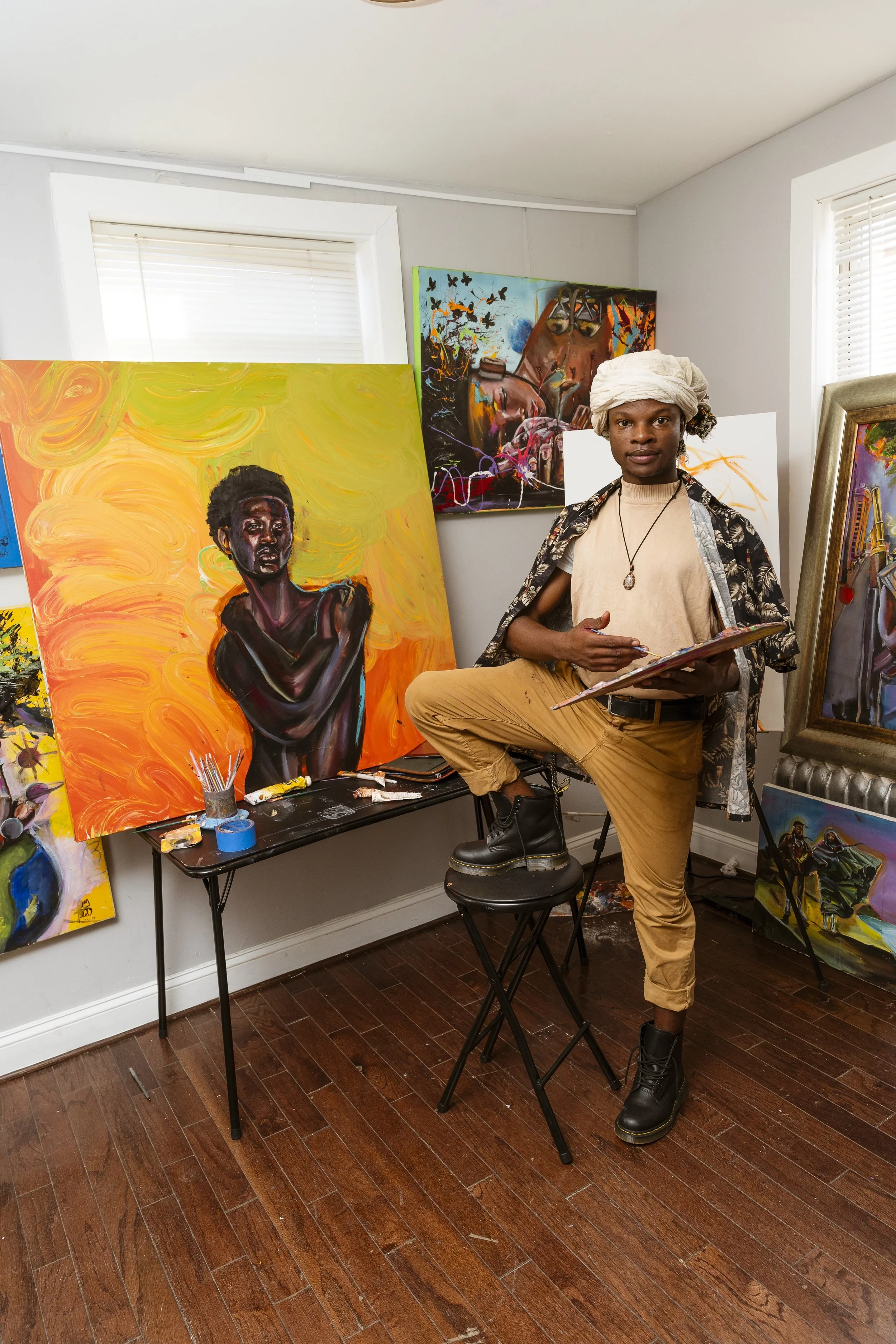 Charmant’s art often reflects his passion for the community and the beauty in the life surrounding him. This passion transcends the canvas. As a leader in the arts, Chamant also offers mentorships, lessons, workshops, and more to community members.